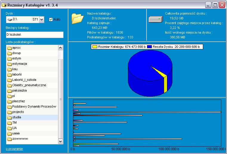 Program służy do sprawdzania rozmiaru zajmowanego przez katalogi na dysku.