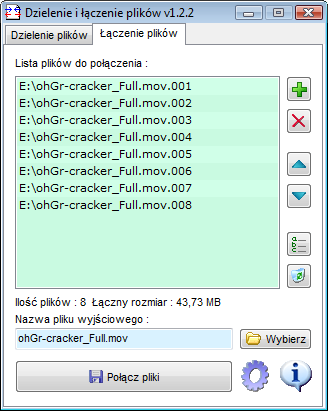 Program nie służy też do dzielenia na mniejsze części wyżej wymienionych plików !
