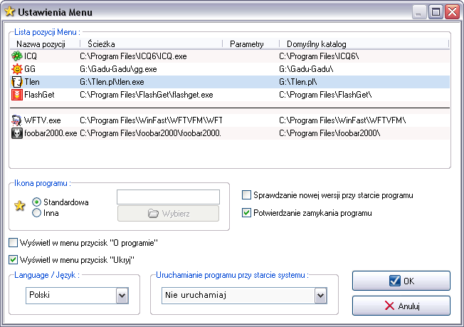 Configurable menu docked on tray bar with programs to execute.